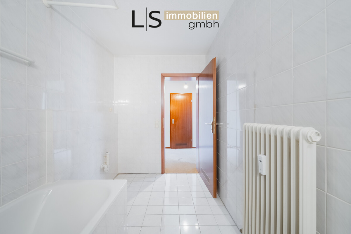 Das innenliegende Badezimmer ist großzügig geschnitten und mit einer Badewanne, einem Handwaschbecken sowie einem Waschmaschinenanschluss ausgestattet. Zusätzlich gibt es ein separates WC, was den Wohnkomfort erheblich steigert.